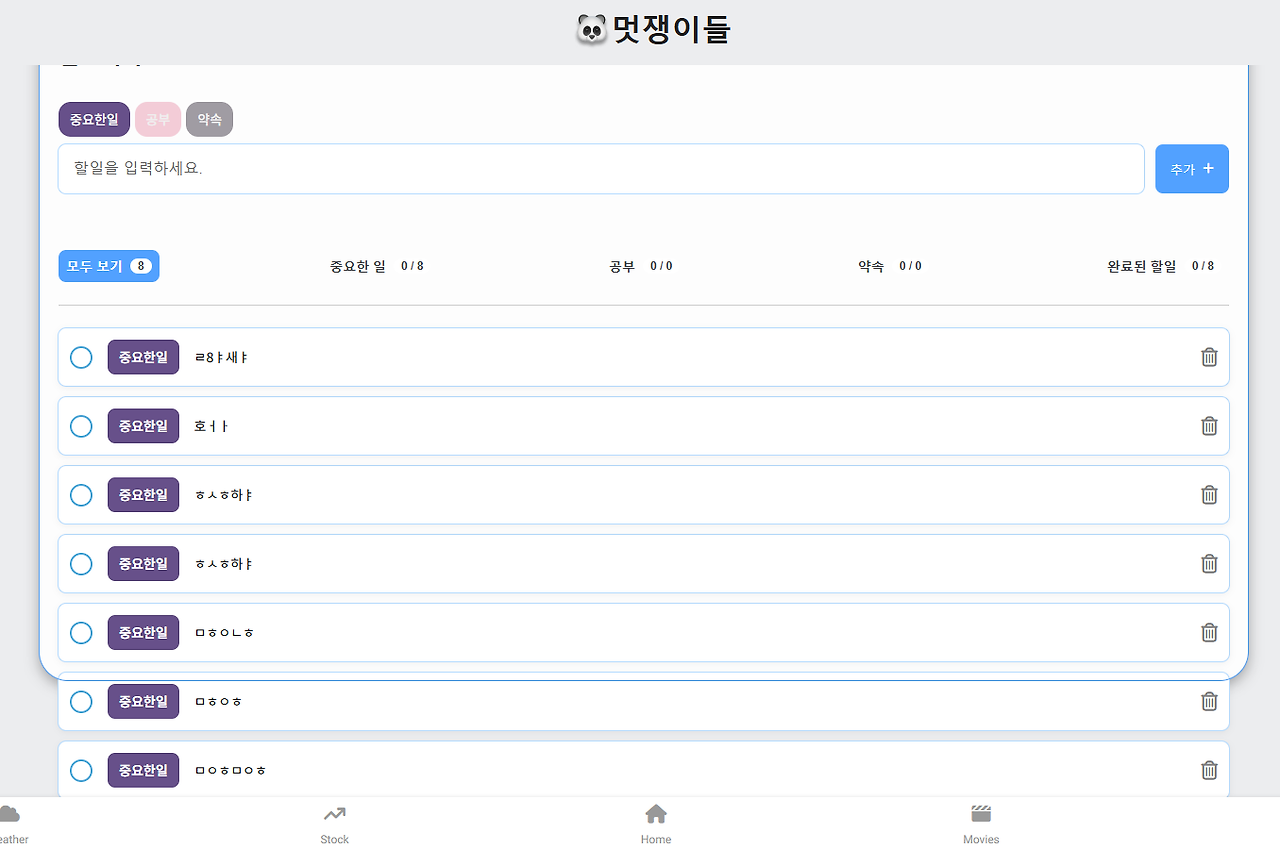 - Todo 탭에서 생성된 현재 할일 목록 표시