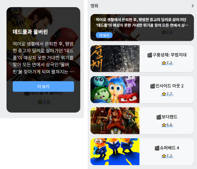 - 모바일 화면에서 터치로 영화리스트 좌우 이동 구현