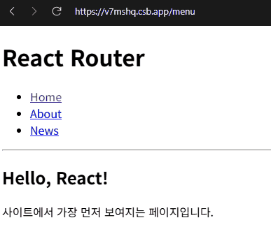 (⭐ 즉, 여기서 <Outlet /> 위치에 <Home />, <About />, <News /> 가 렌더링 되는 것)